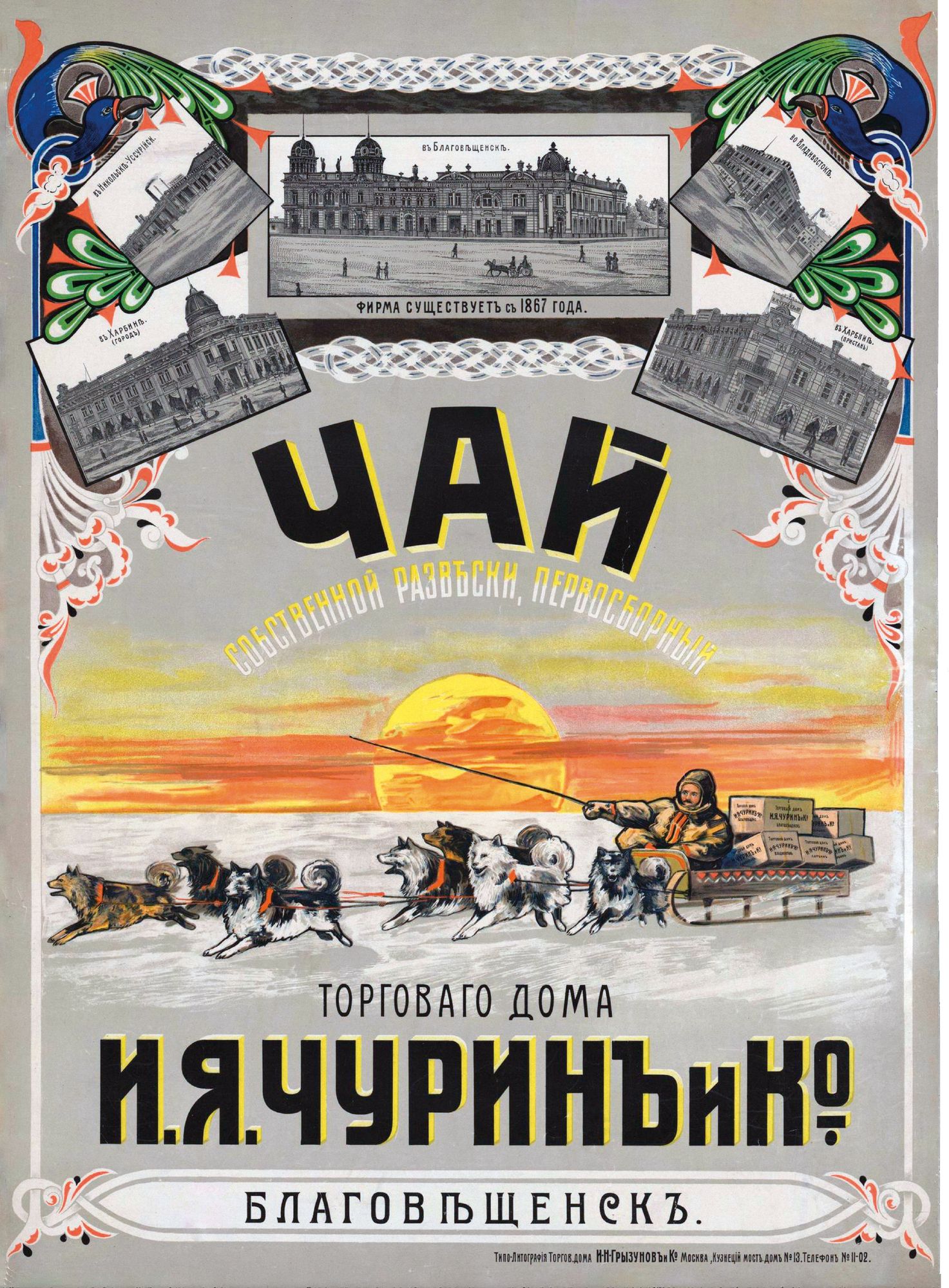 В универсальных магазинах торгового дома «И. Я. Чурин и К°» в Харбине… имеются всегда в большом выборе мануфактурные и галантерейные товары. Мужское и дамское готовое платье, белье и обувь. Галоши Российско-Американской Резиновой Мануфактуры. Парфюмерия разных фабрик. Золотые, серебряные и бриллиантовые вещи. Бронза. Фотографические аппараты и принадлежности. Писчебумажные товары и канцелярские принадлежности. Мебель буковая «Ампли». Арматуры электрические. Лампы. Зеркала. Кровати. Обои. Линолеум. Столовые и дверные клеенки. Хрусталь фабрики «Баккара»…Винно-бакалейные и гастрономические товары. Чай собственной развески. Торговый дом «И. Я. Чурин и Ко» единственный представитель на пишущие машины «Смис-Премьер», огнетушитель «Оптимус» и газированные сифоны «Прана».