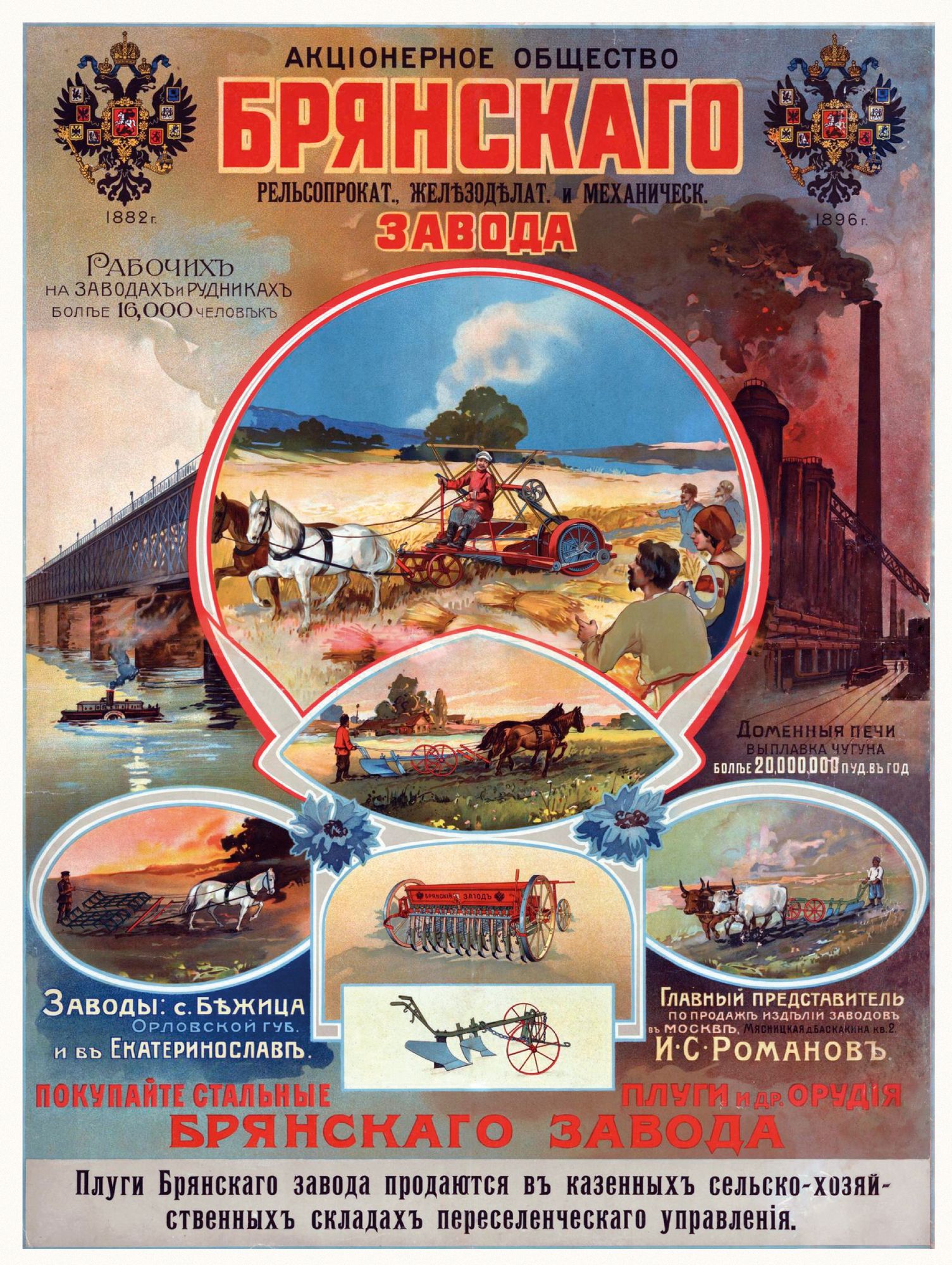 В 1896 году продукция завода экспонировалась на Всероссийской промышленной выставке в Нижнем Новгороде. На промышленных выставках 1911–1914 годов высокую оценку получила произведенная на Брянском заводе сельскохозяйственная техника: плуги получили 14 больших и 49 малых золотых медалей.