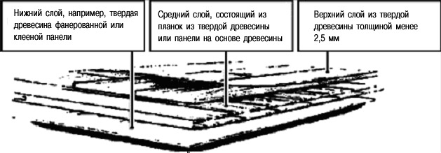 Фанера клееная, фанерованные панели и аналогичная слоистая древесина, используемые в качестве напольных панелей (см., в частности, четвертый абзац пояснений к данной товарной позиции), охватывают только те панели, которые имеют верхний слой древесины толщиной менее 2,5 мм (тонкий шпон). Пример типичного трехслойного изделия: