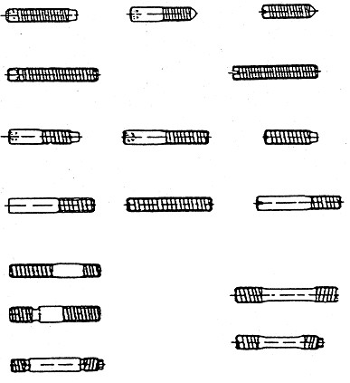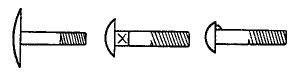 Заклепки отличаются от изделий, описанных выше, тем, что у них отсутствует резьба; они обычно цилиндрические с круглой, плоской, усеченно–конической или потайной головкой.