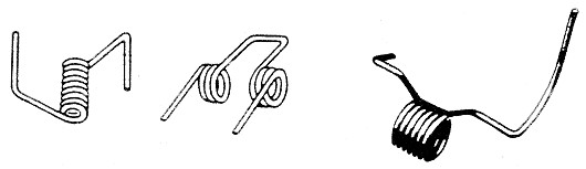 (2) Спиральные пружины, обычно конические, выполненные из проволоки или прутков прямоугольного или овального поперечного сечения, или из плоского полосового металла. Они применяются главным образом в амортизаторах, буферах железнодорожных сцепок, садовых ножницах, машинках для стрижки волос и т.п.