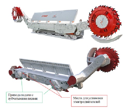 Машины проходческие для добычи угля на гусеничном шасси, оснащенные рабочим органом, состоящим из стрелы и вращающейся коронки, снабженной режущими зубьями (резцами), и погрузочным оборудованием