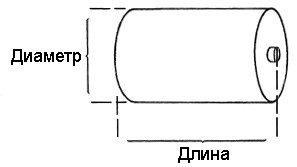 Цилиндрические элементы имеют круглое поперечное сечение. Положительные и отрицательные полюсы расположены на противоположных концах элементов. Длина цилиндрического элемента больше его диаметра: