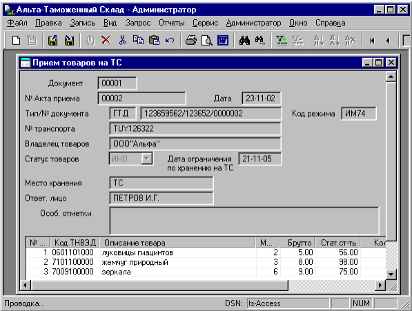 • загружать таможенную декларацию ИМ-70 и вести прием товара на склад по данным ДТ;