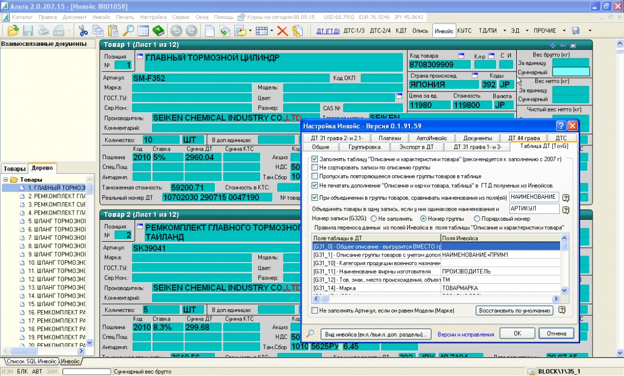 Одно из важнейших средств автоматизации процесса заполнения документов. Приложение позволяет значительно сократить сроки создания документов, особенно для больших товарных перечней, за счет автоматизации обработки инвойса и предварительной подготовки декларации на товары. При оформлении максимально используются готовые данные, поступившие к декларанту в электронном виде (например, от зарубежного отправителя по e-mail). Сначала с помощью программы «Заполнитель» или из программы «Артикул» из поступившего документа в приложение переносятся все данные о товарах - код ТН ВЭД, вес, стоимость, количество, модель, артикул, цвет и пр., а также компания, страна, и др. Затем программа совершает целый ряд преобразований, чтобы получить оптимизированный, переработанный инвойс, из которого далее легко формируется полноценная ДТ, требующая минимального дополнительного редактирования. Многочисленные настройки позволяют оптимизировать этот процесс под особенности конкретной схемы оформления.