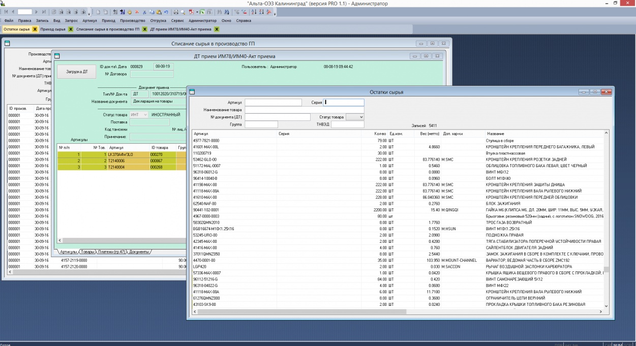 Программный комплекс «Альта-СТЗ Калининград» разработан для предприятий, производящих продукцию в Особой экономической зоне Калининградской области. Основным назначением ПК является учет сырья для его идентификации в составе готовой продукции в Калининградской торговой промышленной палате, подлежащей вывозу за пределы ОЭЗ по ДТ в режиме ИМ 4078115 и ИМ 4078116. ПК адаптируется под цели конкретного Заказчика, исходя из специфики производства, типов выпускаемой продукции и внутренней системы учета предприятия, включая сборочное производство, производство пищевой продукции.