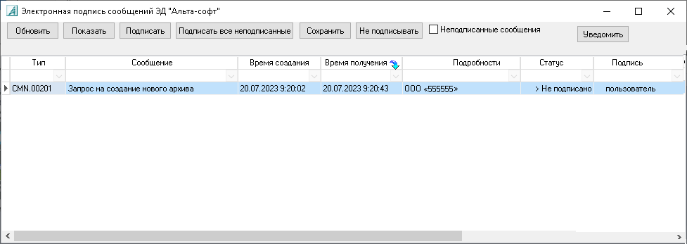 Если пришли новые сообщения на подпись, будет гореть соответствующее оповещение
